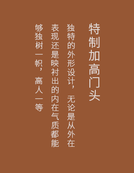 | 秉承中國(guó)“藏風(fēng)聚!钡膫鹘y(tǒng)理念,研發(fā)出特殊的設(shè)計(jì)工藝,無(wú)需更改門(mén)洞尺寸,加高門(mén)框處理,添財(cái)納吉祥、五福入豪門(mén) |
